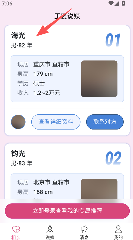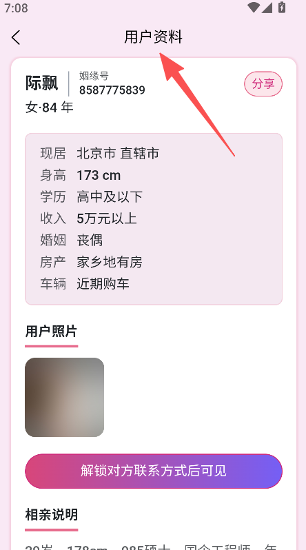 2、信息获取链路顺畅,从浏览资料到查看详细信息再到解锁联系方式,操作流程贴合相亲实际需求。