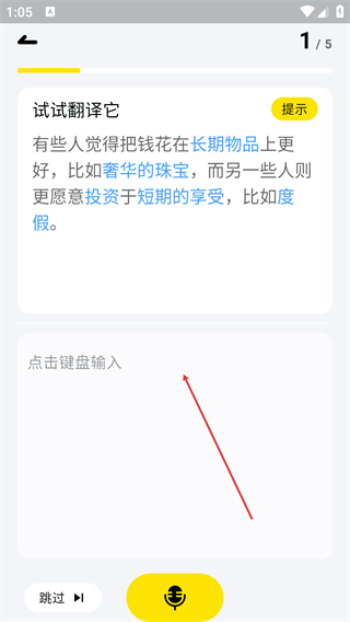 4、在练习界面根据提示完成翻译任务,可通过输入框提交练习内容。