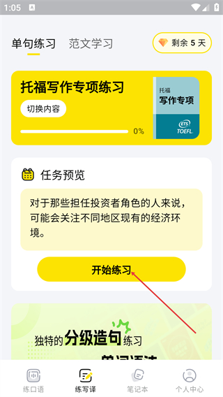 3、在练习模块页面点击【开始练习】,即可进入具体的练习任务界面。