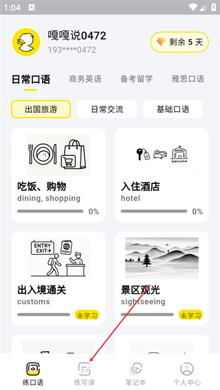 3、内置口语专项练习功能,提供跟读模仿与智能评分反馈。帮助用户每天开口说英语,针对性提升口语流利度与发音准确性。