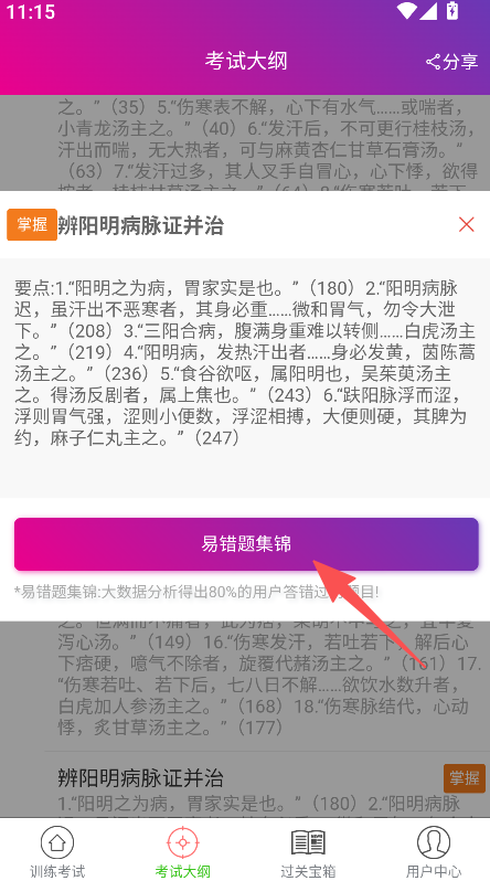 2、支持易错题查看功能,在大纲内容页面点击易错题集锦,查看基于大数据分析的高频错题内容。