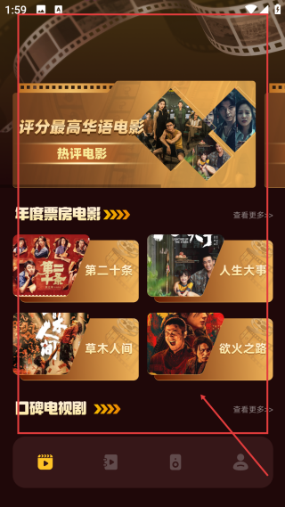 1、进入首页,查看【年度票房电影等板块】,可选择【对应影片可查看或播放相关内容】。