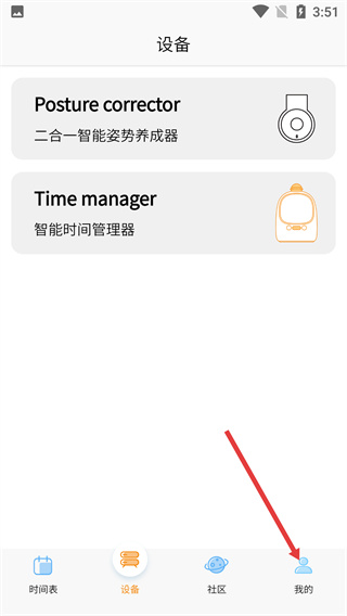 2、进入【设备】页面,点击底部【我的】切换至个人功能界面。