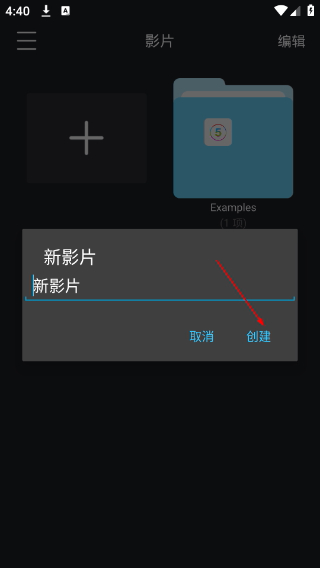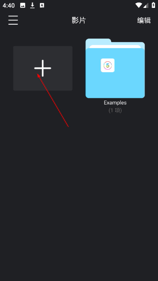 1、进入应用的“影片”页面,点击带“+”标识的区域,触发新建影片操作。