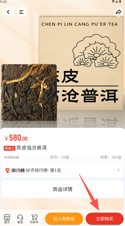 3、在商品详情页确认信息后点击“立即购买”按钮。