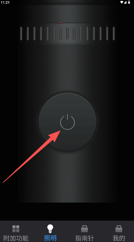 2、找到页面中央的圆形电源点击该按钮以开启手电筒照明。