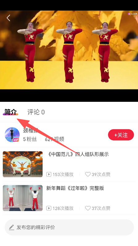 3、关联展示创作者的其他作品,拓展舞蹈内容获取渠道,同时关注功能可及时获取创作者的新内容。