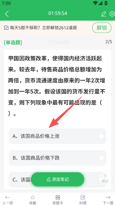 3、做题过程中可添加笔记辅助备考学习。