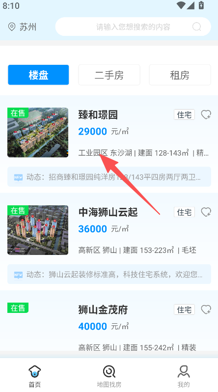 3、查看搜索结果,了解展示的楼盘详细信息。