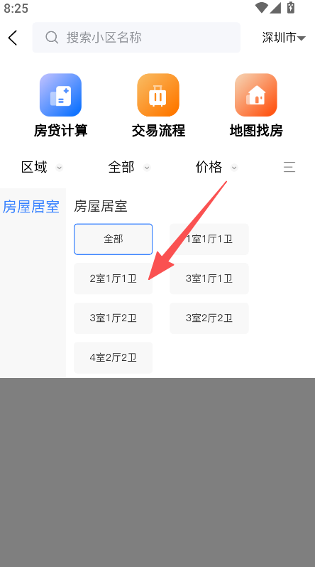 2、居室选择功能,从1-4室户型里选定,匹配居住场景,筛选契合的房屋类型。