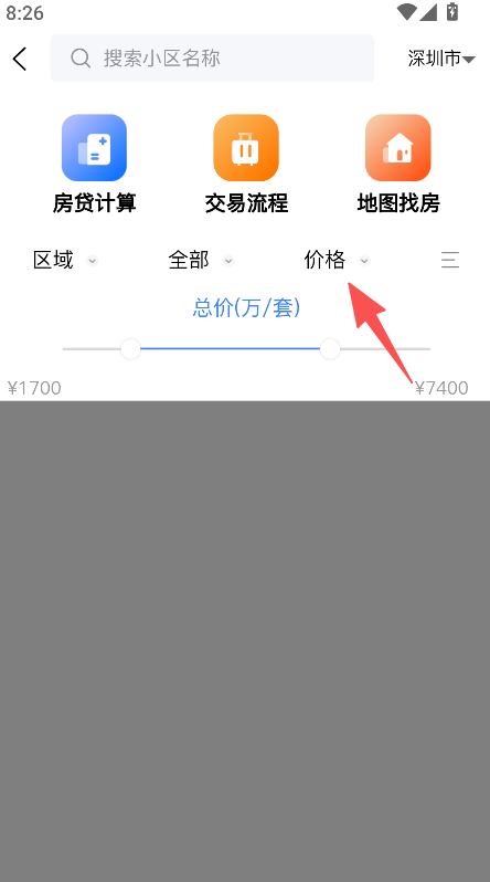 3、设总价区间调节功能,覆盖1700-7400万每套,依预算灵活限定房源价格区间。