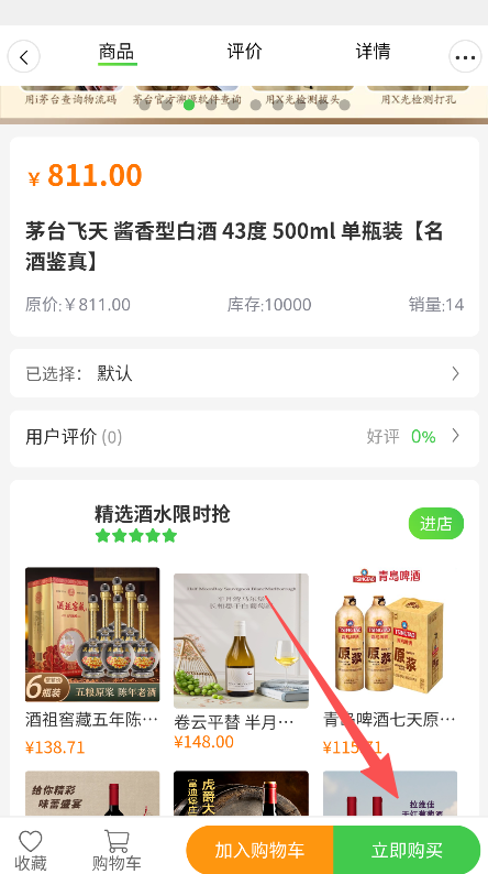 3、具备商品购买功能,进入详情页后点击对应按钮,即可完成商品的下单流程。