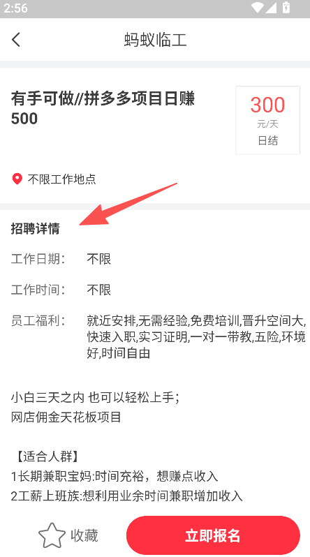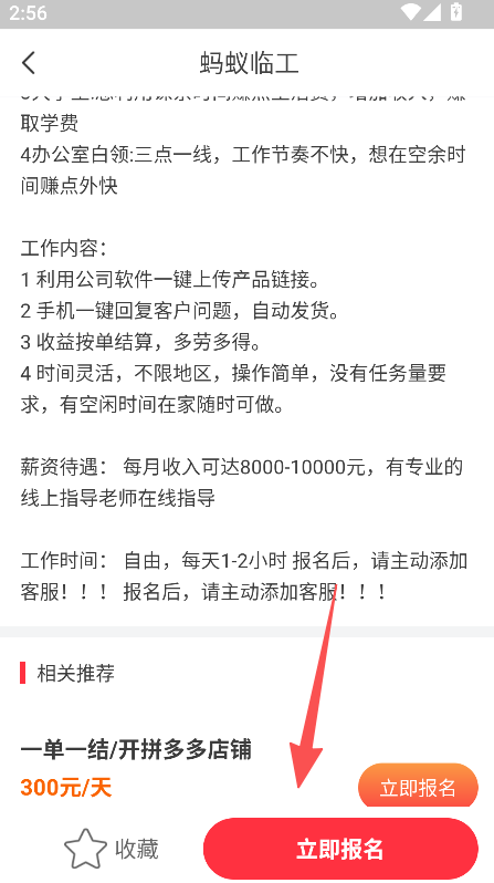 3、支持立即报名功能,点击对应按钮即可参与兼职项目,完成相关报名操作。