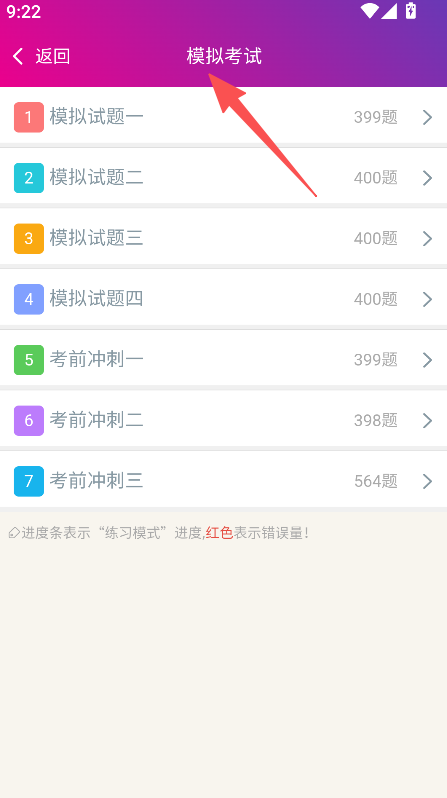 1、套题分类清晰且标注题量,可快速识别不同套题的练习容量,提升备考规划效率。