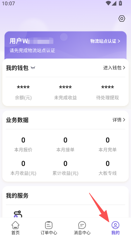 1、设我的页面含我的钱包业务数据板块,展示余额报价等信息,归集物流端核心账户与业务数据。