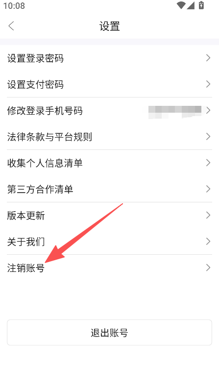 3、在设置页面选择注销账号,查看温馨提示后操作。
