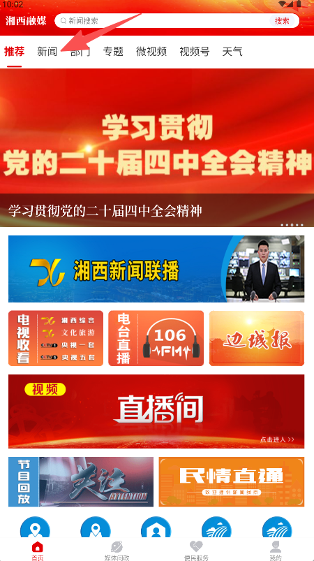 1、打开首页顶部点击新闻进入。