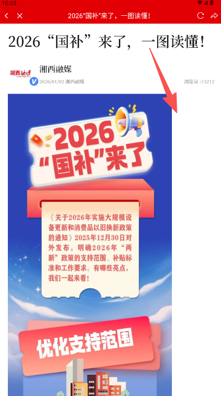 2、在新闻栏目浏览信息流找到“2026国补”图文。