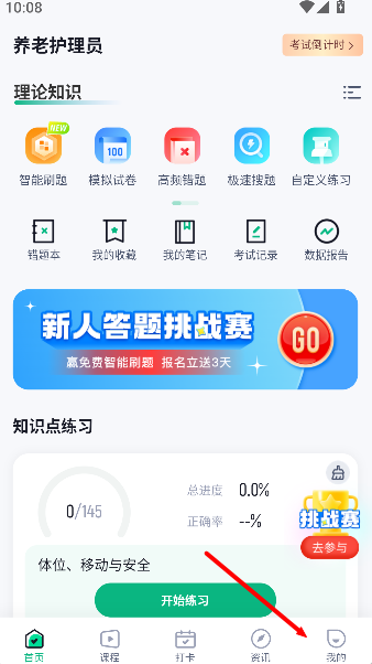 1、进入《养老护理员考试聚题库》软件,点击右下角我的。