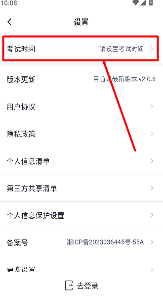 3、进入设置页面后,点击设置考试时间即可。