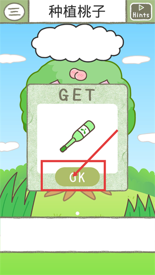4、获取云朵道具后,界面显提示窗口,点击下方按钮关闭窗口,使用云朵助力桃子掉落。