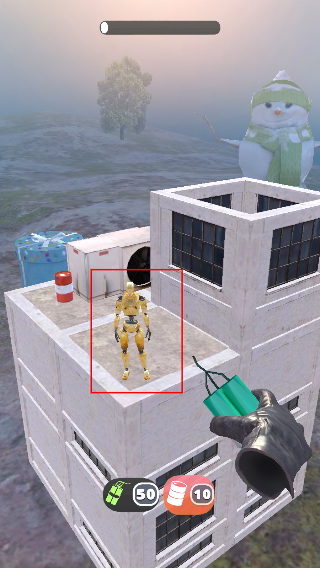 1、瞄准建筑上的人物丢炸药。