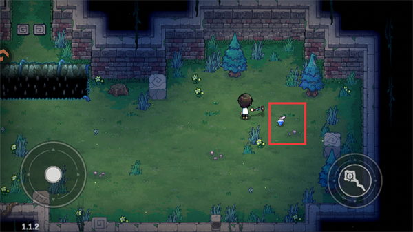3、击败蘑菇后场景出现蓝色掉落物品,操控角色移动到物品位置,靠近即可拾取获取对应的游戏资源。