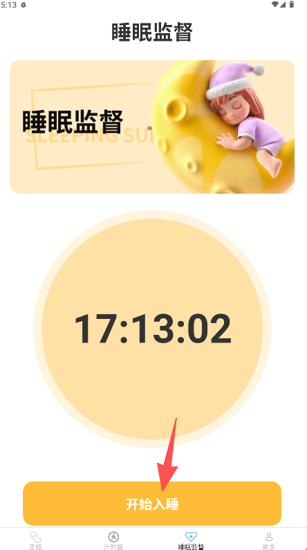 2、进入功能页后点击中央醒目的“开始入睡”启动睡眠监测计时。