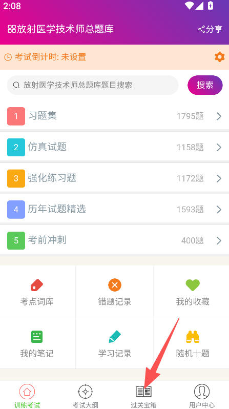3、过关宝箱板块含考试大纲、复习资料,提供备考指导,覆盖考试相关的各类辅助内容。