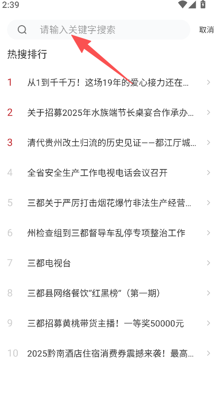 2、热搜排行展示热门资讯,可及时了解三都当下的关注热点,增强信息的时效性与相关性。
