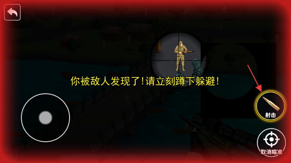 3、瞄准目标后,点击“射击”按钮对敌人发起射击,在被敌人发现前完成射击。