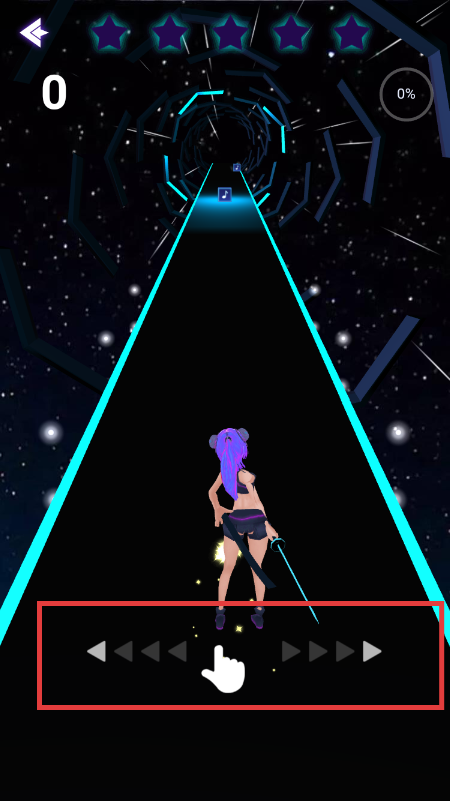 2、通过滑动屏幕控制角色左右移动,收集音符。