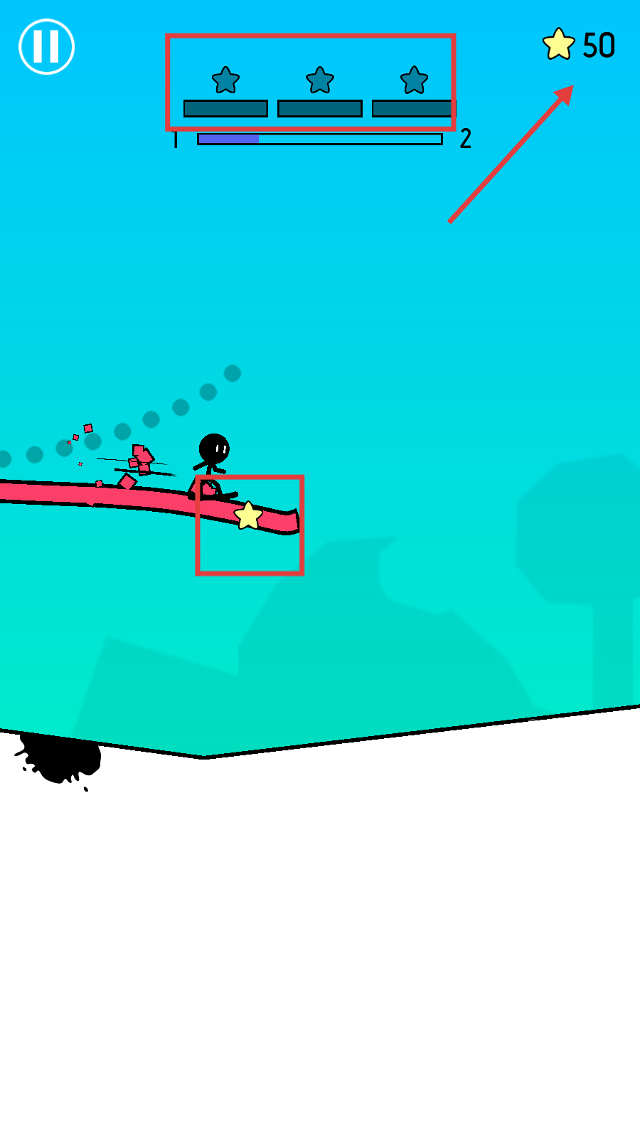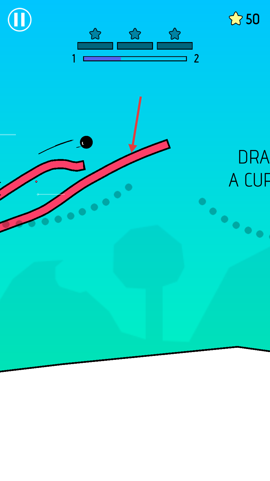2、在屏幕上划线,操控角色在红色路径上滑行,保持平衡。