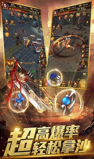3、经典热血回归,再续王者攻沙千人同屏激战的热血超燃战斗场面,轻松拾取高爆率的极品神装,遍地随意拾取让你拿到手软