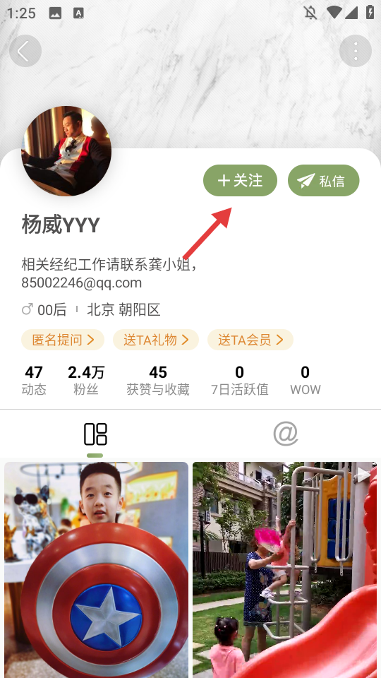 4、在个人主页点击“+关注”,完成对该主播的关注操作。