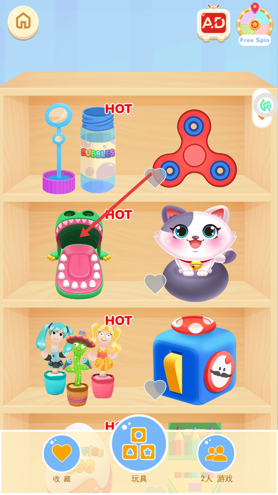 2、在玩具选择界面,点击鳄鱼玩具,进入鳄鱼玩具的游戏环节。