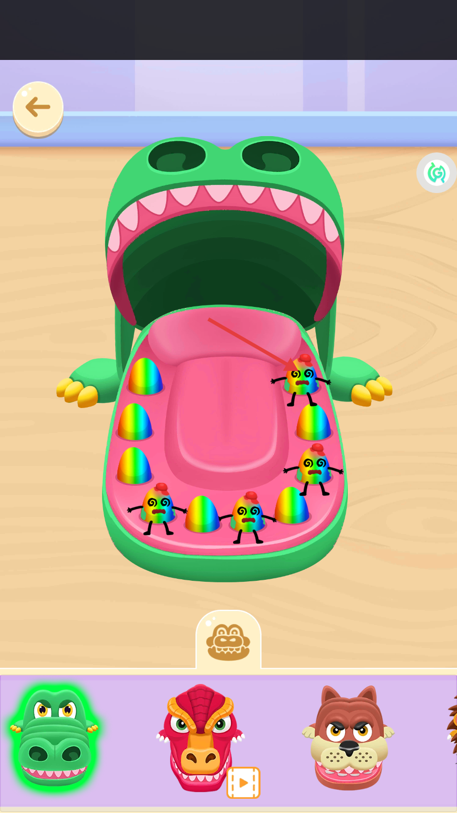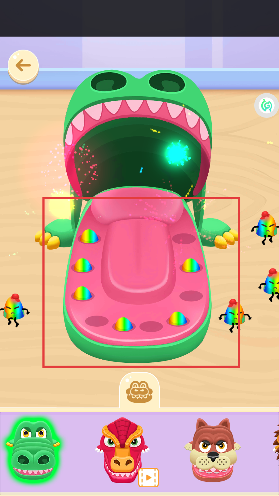 3、进入鳄鱼玩具游戏后,不要点击鳄鱼嘴里的彩色小怪物。