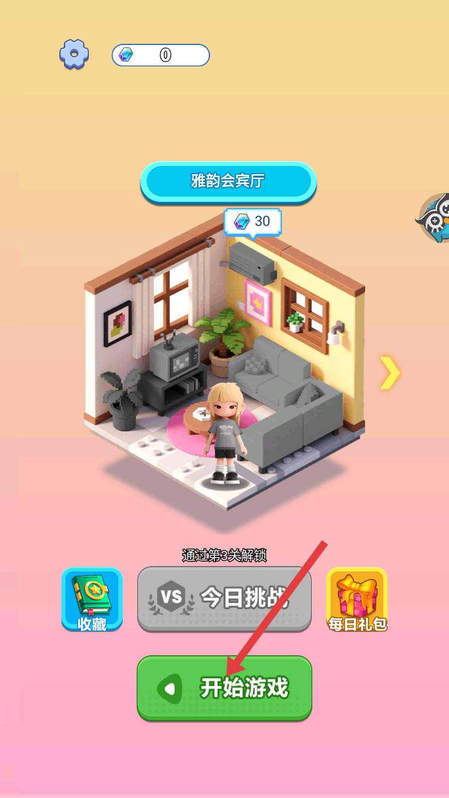1、点击【开始游戏】,进入游戏关卡。