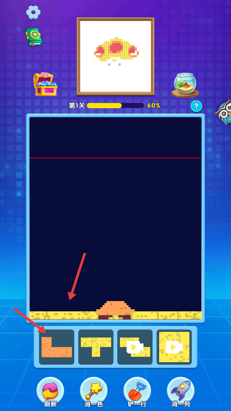 2、选择下方的方块,放置到上方对应位置,进行消除。