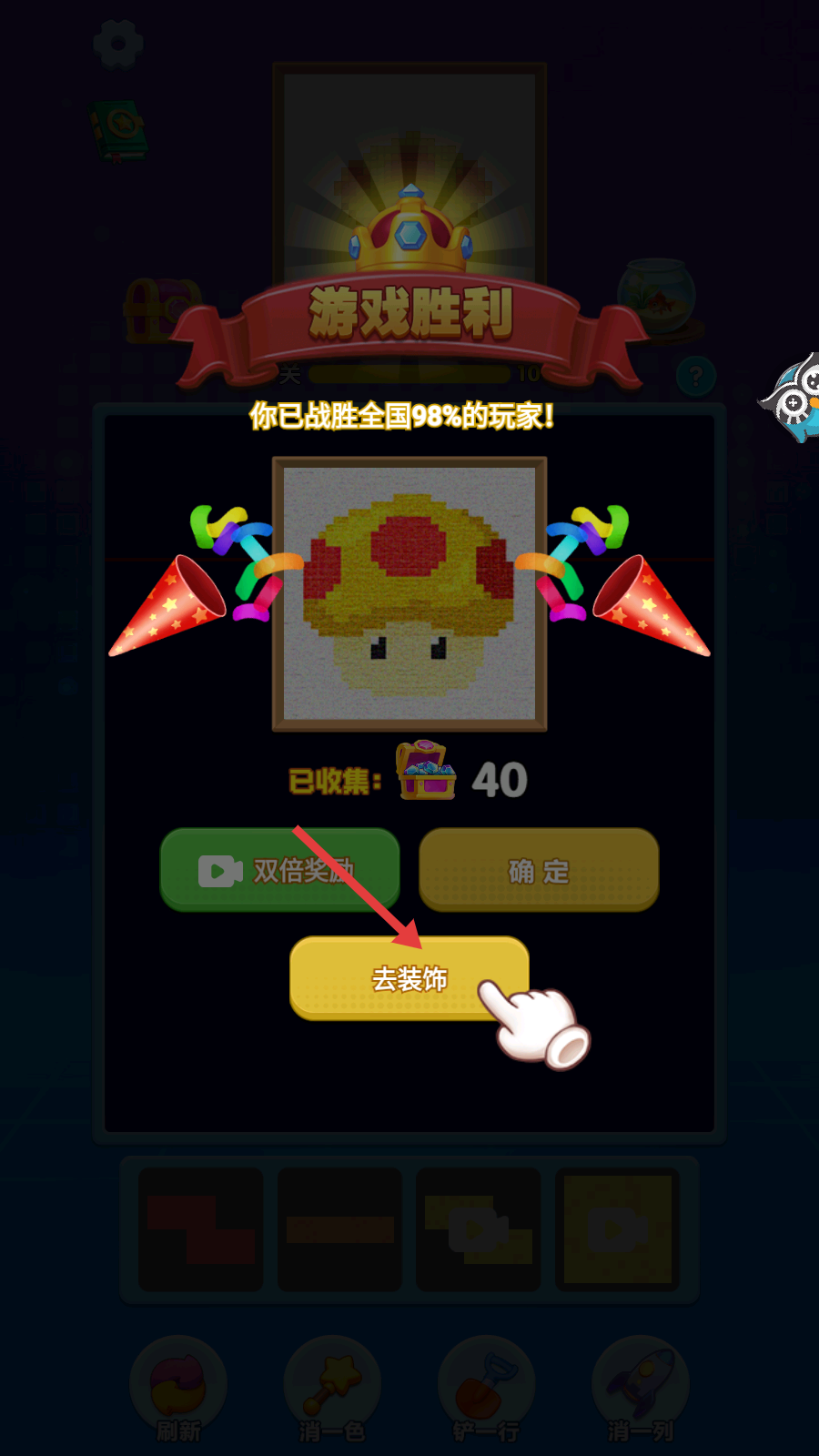 4、游戏胜利后,点击【去装饰】,可对场景进行装饰。