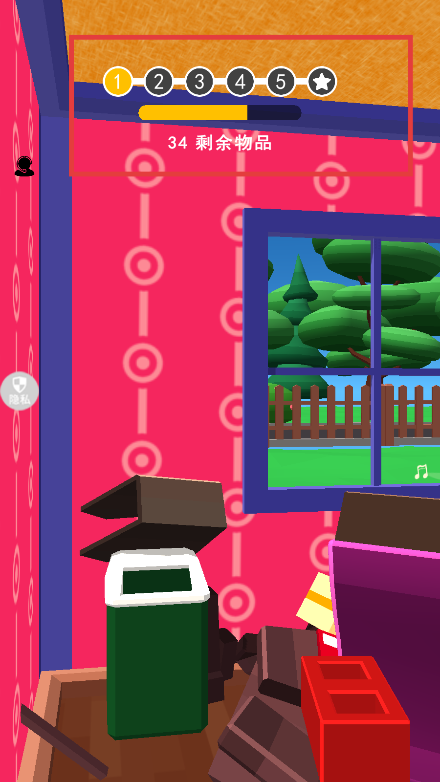 3、持续破坏物品,注意上方显示的剩余物品数量,推进游戏进度。