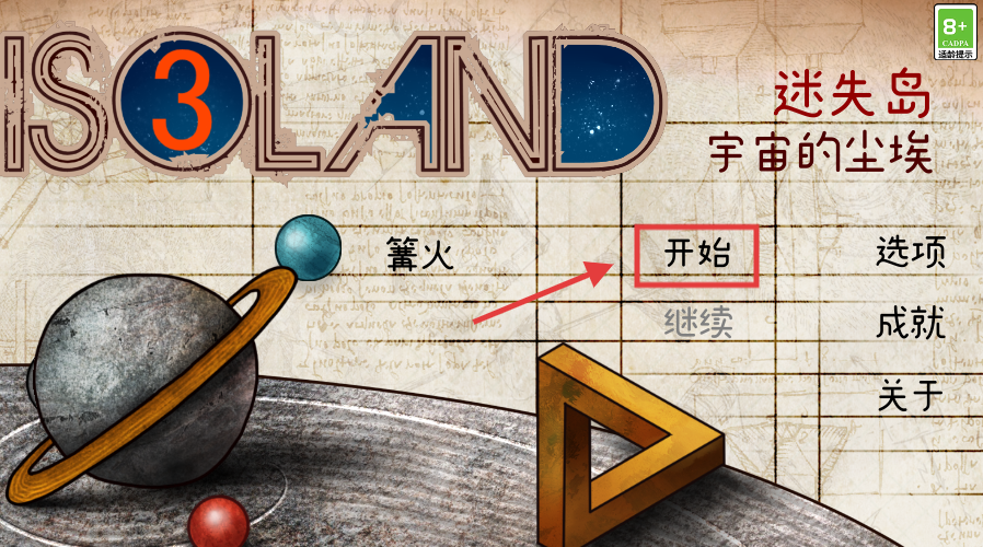 1、进入游戏主界面,点击【开始】按钮,开启迷失岛3的星际探险之旅,踏上神秘星球探索之路。