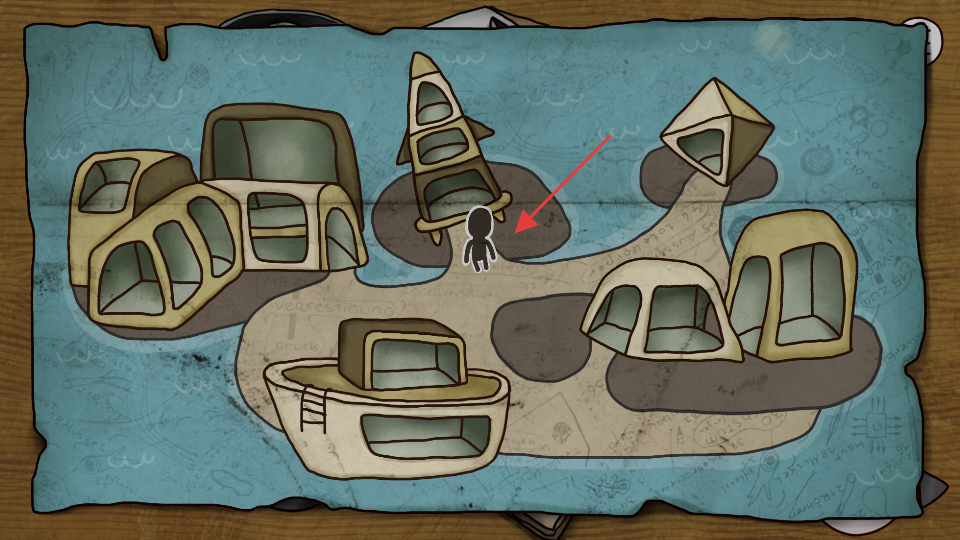 4、在星球地图界面,操控小人移动至【火箭】建筑附近,进入该区域探索,寻找人类踪迹与谜题线索。