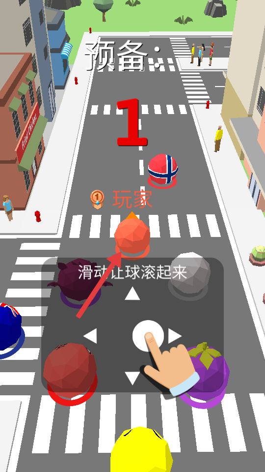 1、按照提示滑动,让球开始滚动,进入游戏对局。