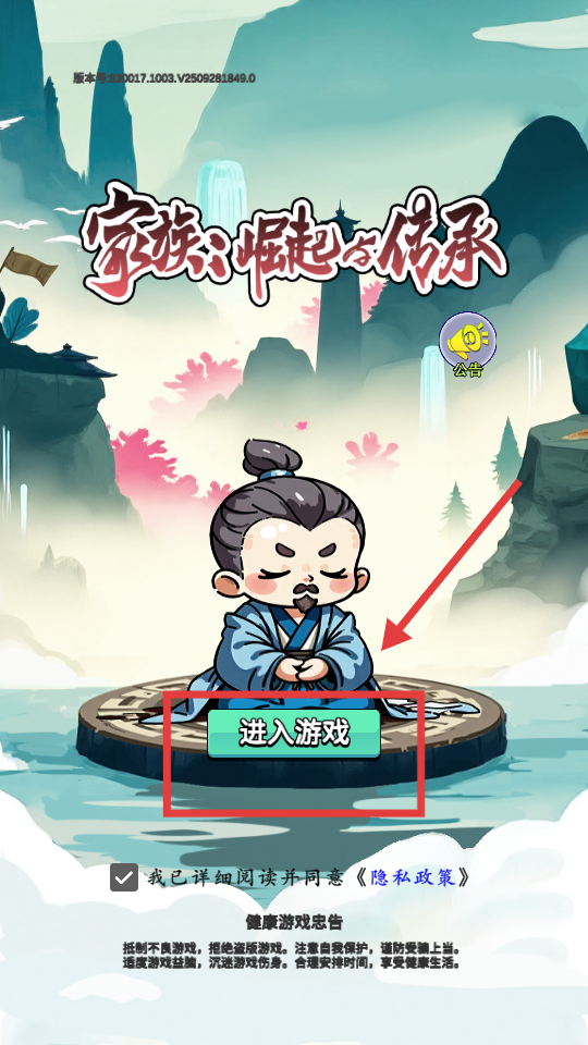 1、点击【进入游戏】按钮,开启家族从平民逆袭为大亨的模拟经营之旅。