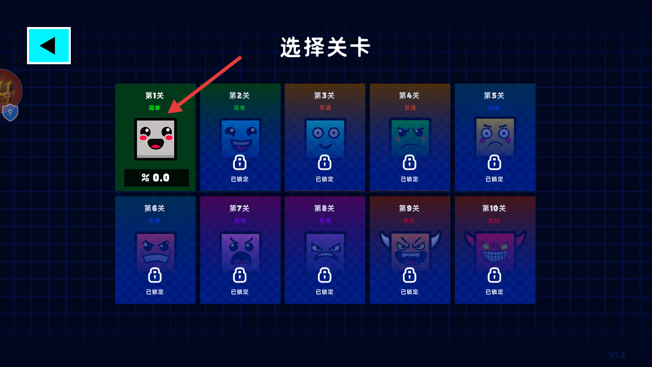 2、在【选择关卡】界面,选择【第1关】开始游戏。