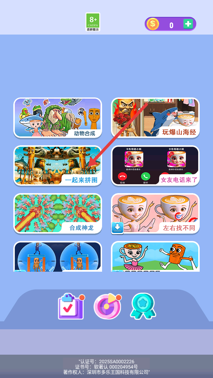 2、在第1关,从下方拼图中选取合适的,拼入上方对应位置。