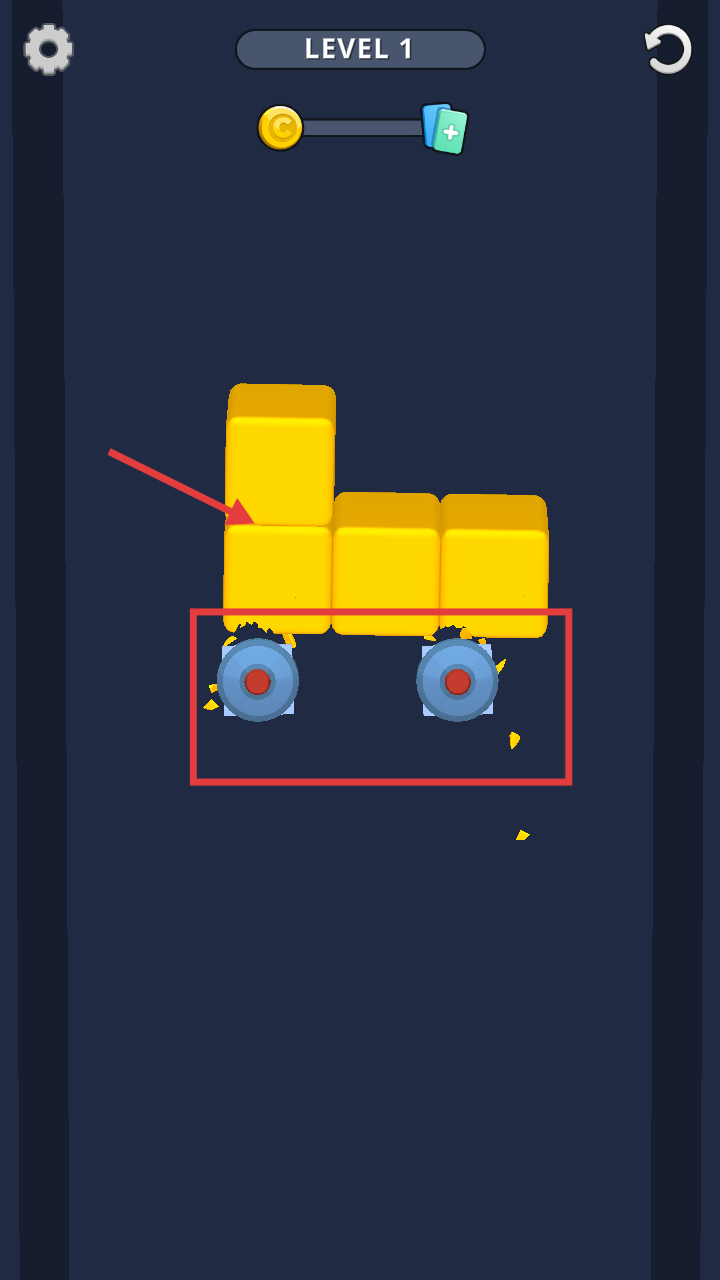 2、锯子开始切割黄色方块,完成切割任务。