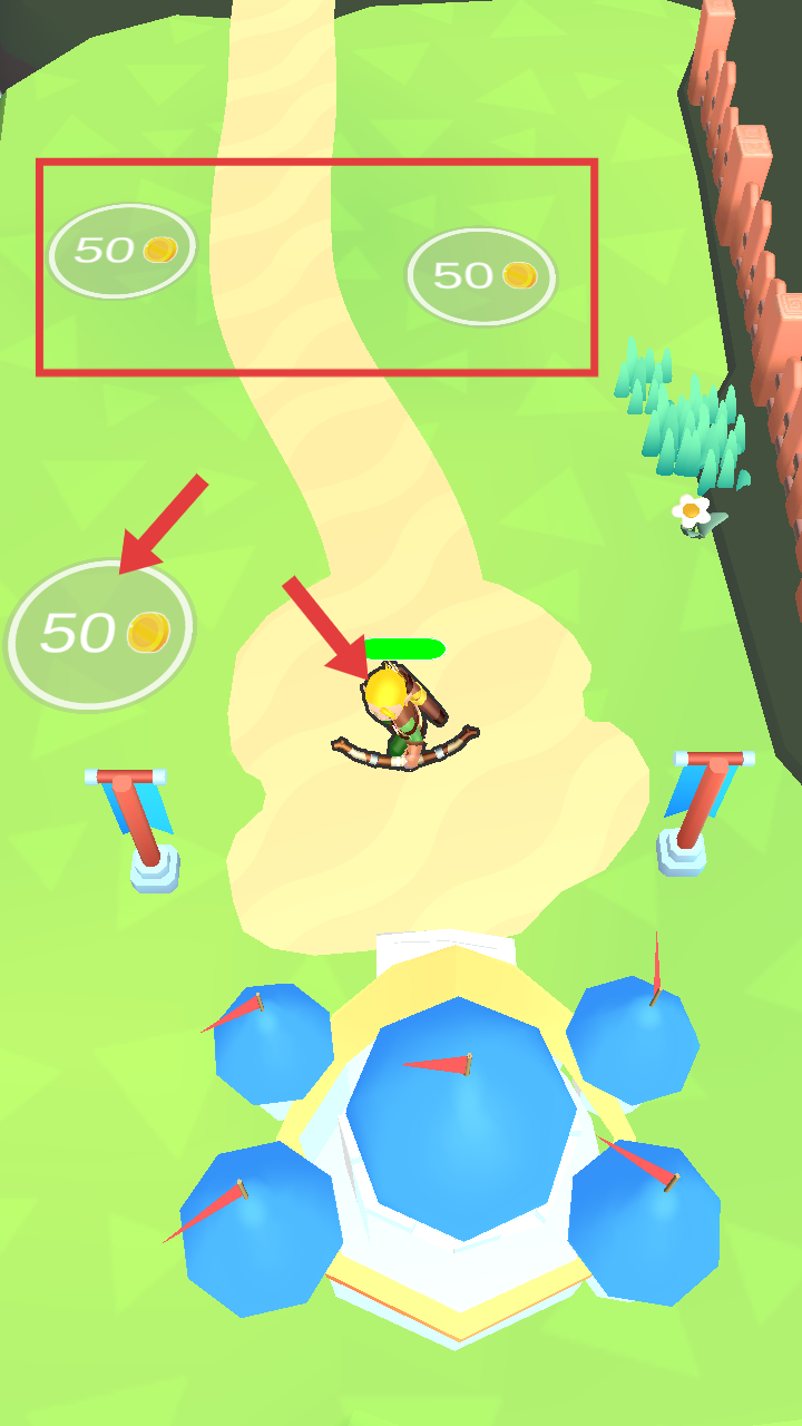4、当敌人被消灭后,会有大量金币,将金币收集起来。