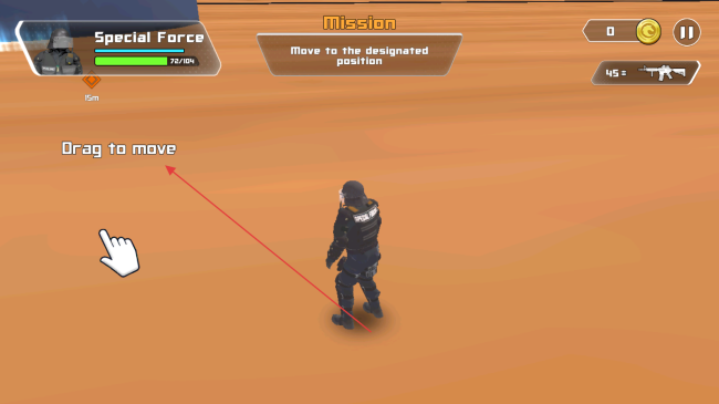 1、按照【Drag-to-move】提示,拖动屏幕控制角色移动,前往任务指定位置,开启行动。
